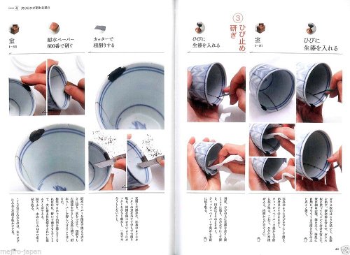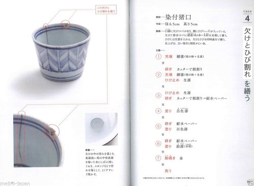 『金継ぎを楽しむ』では、工程のすべてを大きな写真で分かりやすく紹介されています。
